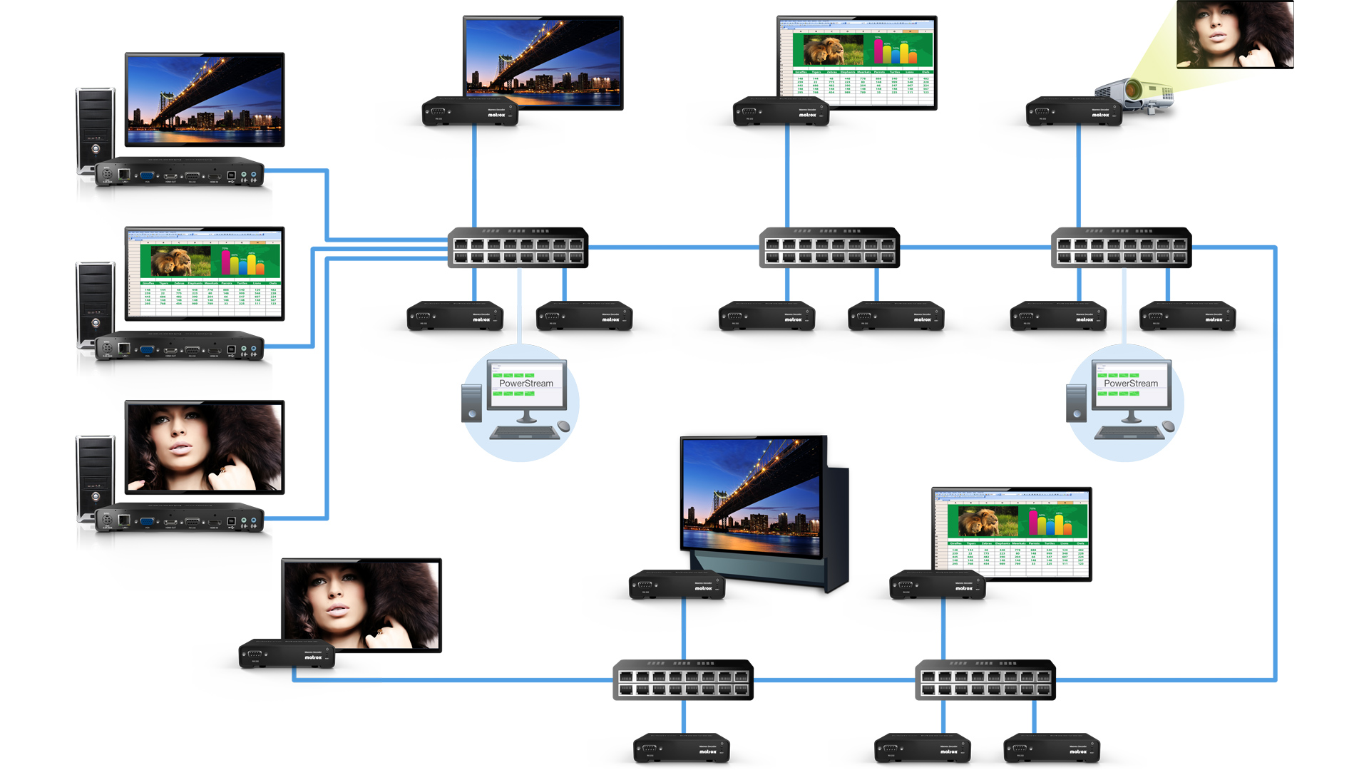 Discover devices, manage content, access hardware, and monitor all streams and recordings from any location on the network via the robust Maevex PowerStream Plus software. Included with the purchase of Maevex hardware, PowerStream Plus renders both generations of Maevex products entirely monitorable, configurable, manageable, and updateable via an intuitive and easy-to-use application. PowerStream Plus can be installed on any network-connected Windows computer.