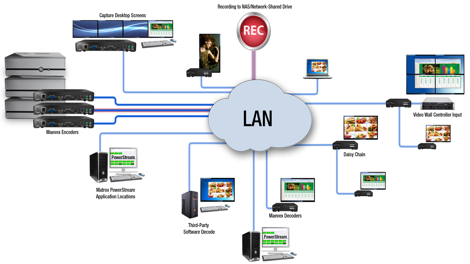 Discover devices, manage content, access hardware, and monitor all streams and recordings from any location on the network via the robust Maevex PowerStream Plus software. Included with the purchase of Maevex hardware, PowerStream Plus renders both generations of Maevex products entirely monitorable, configurable, manageable, and updateable via an intuitive and easy-to-use application. PowerStream Plus can be installed on any network-connected Windows computer.