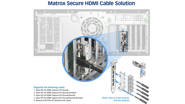From cables and adapters to shelves and brackets, Matrox provides a range of hardware accessories that make connecting, installing, and securing your Matrox product quick and easy.