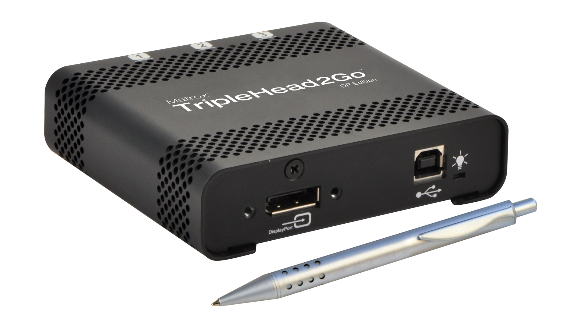 The Matrox TripleHead2Go DP Edition external multi-display adapter adds up to three monitors to your laptop or desktop computer. It connects to the video output of your system and uses the system's existing GPU to provide high-quality, uncompressed graphics and video across all monitors. Ideal for professionals requiring more desktop space for maximum productivity and gamers wanting a totally immersive experience, this little black box lets you run different applications on each display or view one application across multiple monitors.